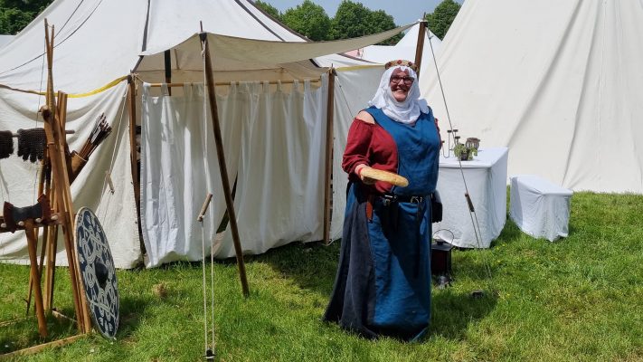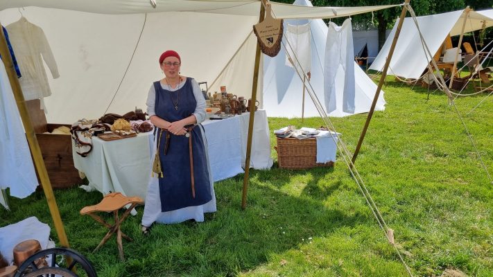 Auch wie im Vorjahr hatten sich Rheinhold von Krinvelde und Anna von Nievenheim mit ihrer Gremplerbank als Lagergäste bei den Stolberger Burgrittern eingeklinkt.