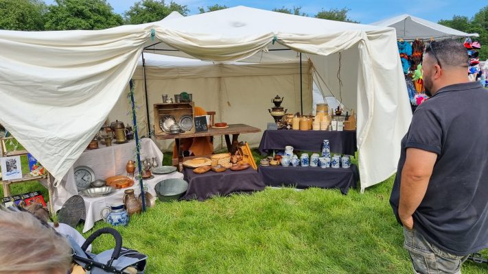 Obwohl die Veranstaltung offiziell erst am Sonntag für Publikum zugänglich ist, öffnete Gremplerin Anna ihren Stand schon am Samstag bei bestem Wetter und bot ihre Waren aus zweiter Hand feil. Die Geschäfte liefen einigermaßen und sie konnte einiges aus ihrem Sortiment an den Mann oder die Frau bringen. Herr Rheinhold schlenderte derweil über die Markt und traf wieder auf viele bekannte Gesichter.